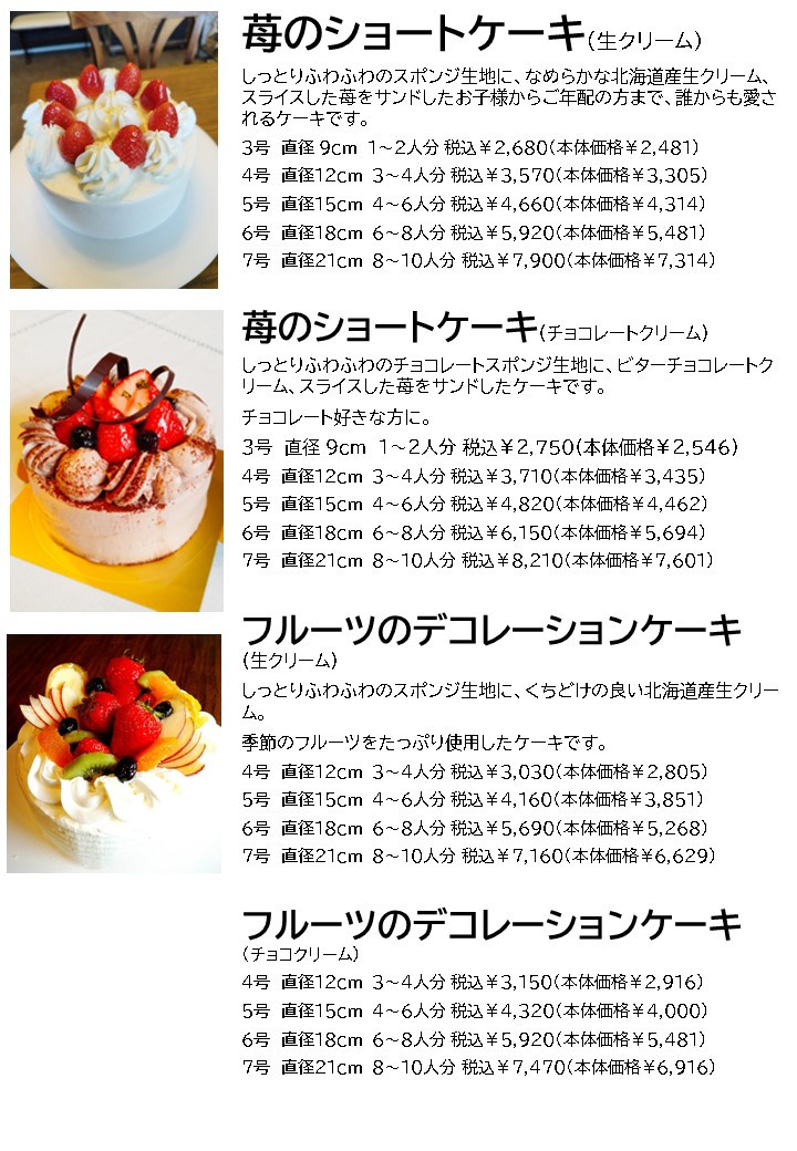●6月~11月の期間、苺の仕入れにお時間がかかります。苺を使用するケーキは、1週間前までにご予約ください。