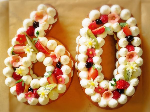 記念の数字を形どったクッキーに、フルーツやチョコレートでデコレーションしています。